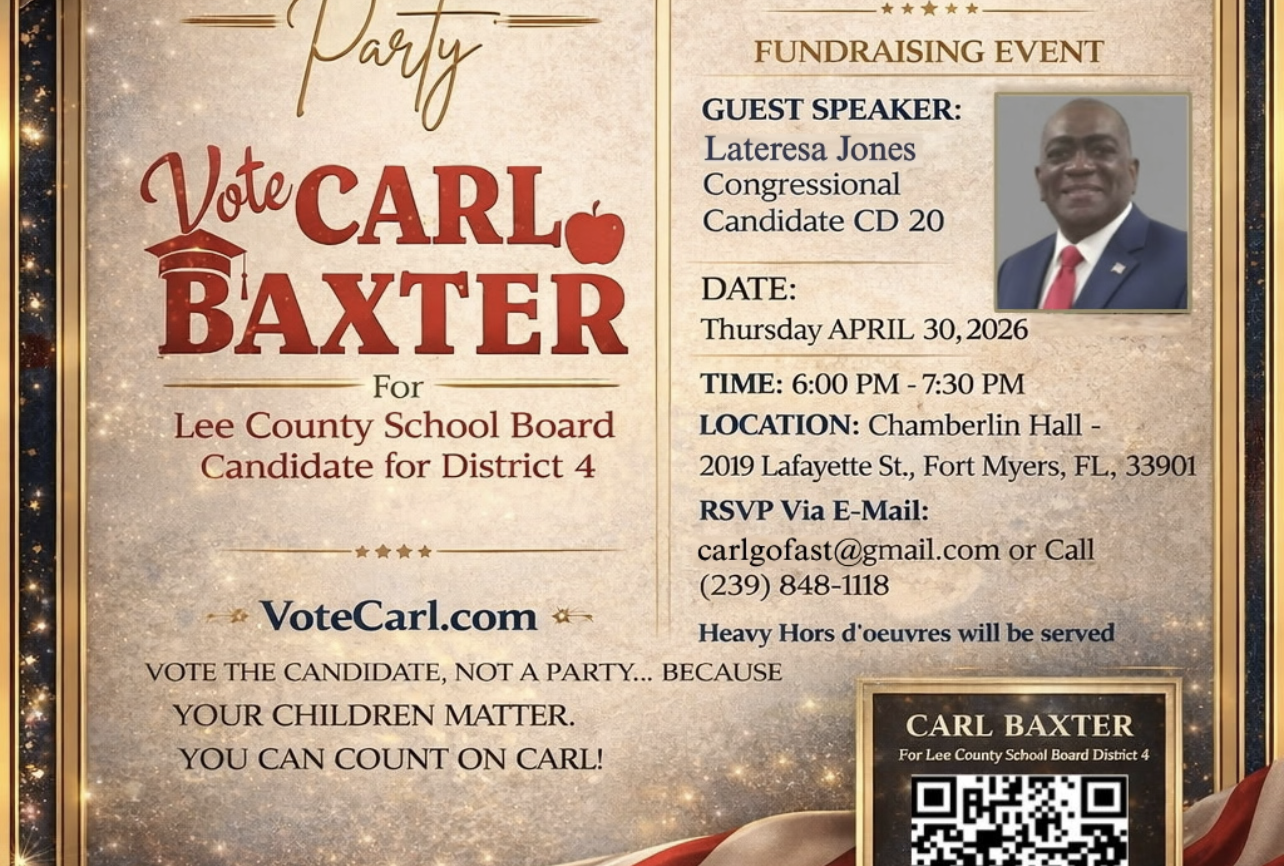 Carl Baxter Campaign Kickoff Party & Meet & Greet! Join us for “Come, Let’s Talk – Less Politics… More Results!” with special guest speaker Lateresa Jones, Congressional Candidate CD 20.…