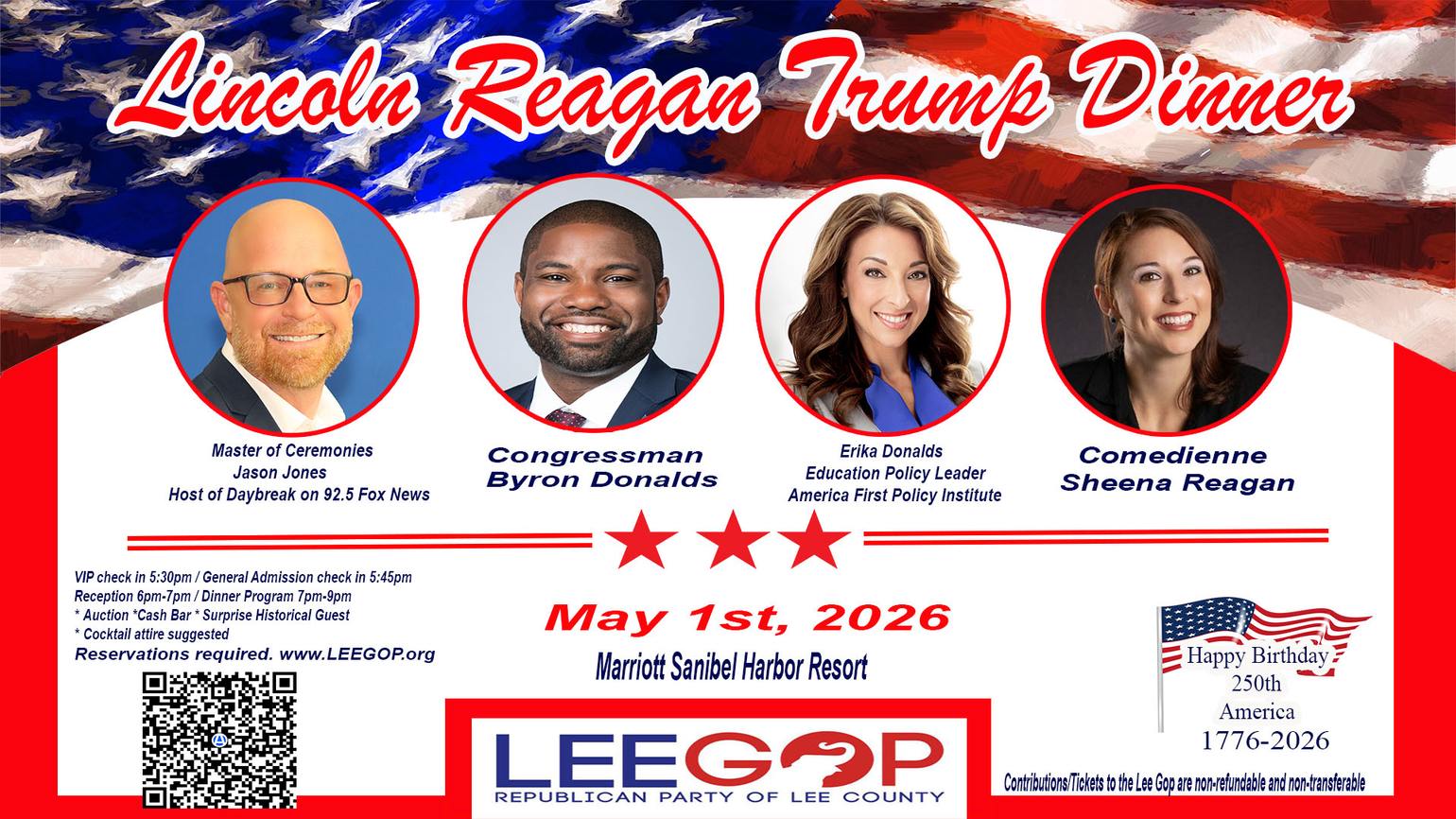 We can finally share with all of you, our confirmed Featured Speaker for the inaugural Lincoln Reagan Trump dinner on Friday, May 1!!