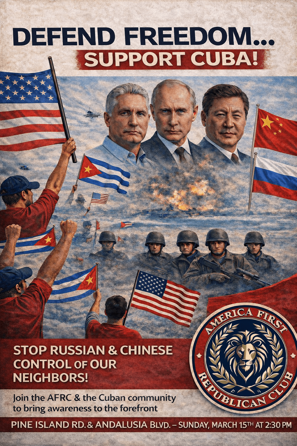 The America First Republican Club is proud to stand with the Cuban community as they raise awareness and call for freedom for Cuba.