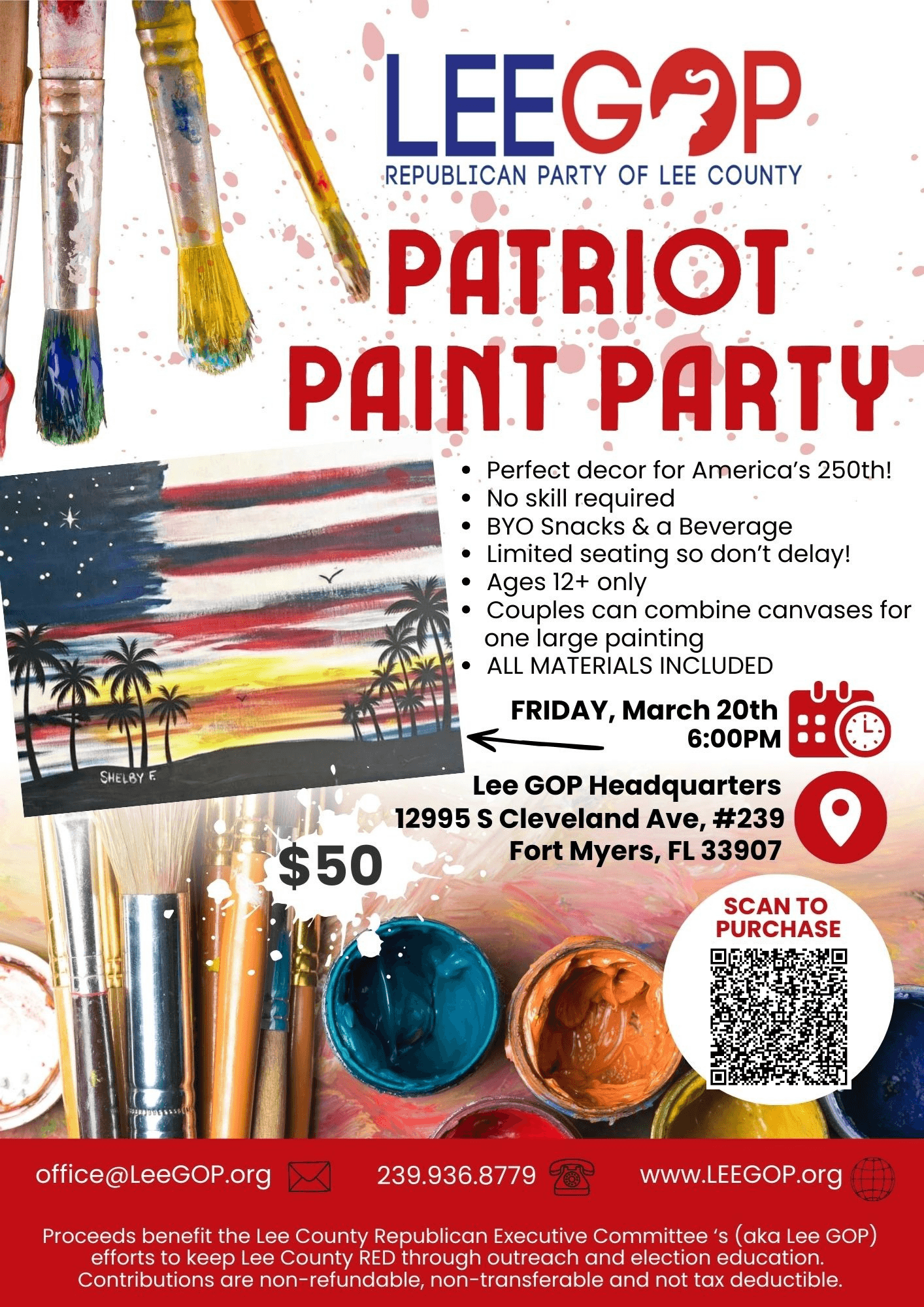 Every brushstroke helps keep Lee County RED because proceeds support your Lee GOP and our mission to stay strong!