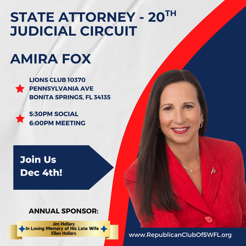 Join us December 4th at the Lions Club in Bonita Springs for our monthly meeting featuring our State Attorney for the 20th Judicial Circuit