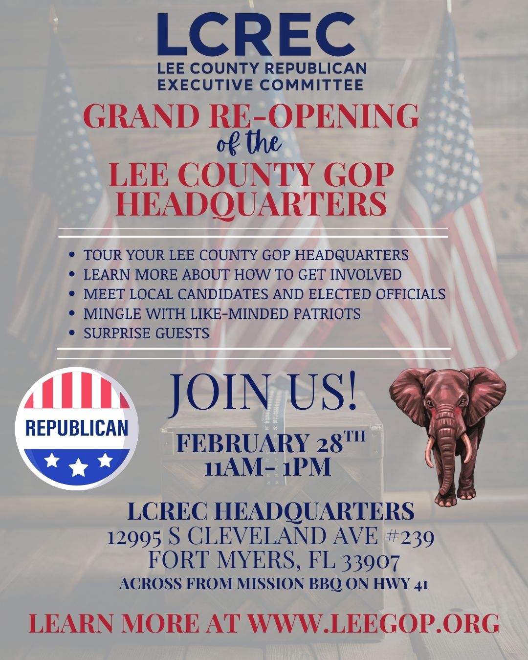 Your Lee County Republican Executive Committee is the business of the Lee County GOP, a direct affiliate of the Republican Party of Florida and Republican National Committee. We…