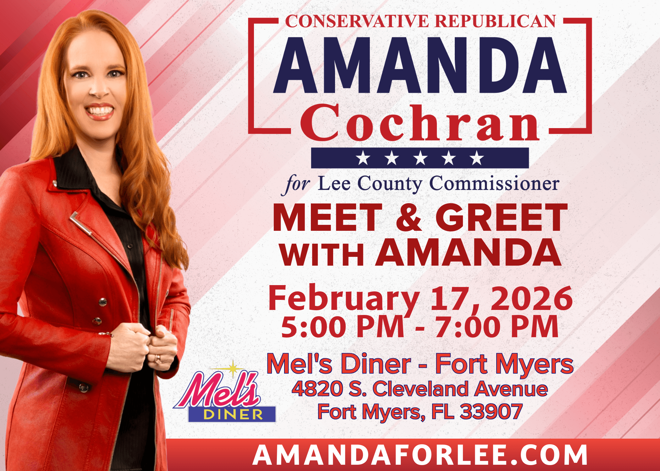 Join us as we kick off my campaign for Lee County Commissioner! Grab dinner and stay for some great speakers at 6PM. Let's win in 2026!