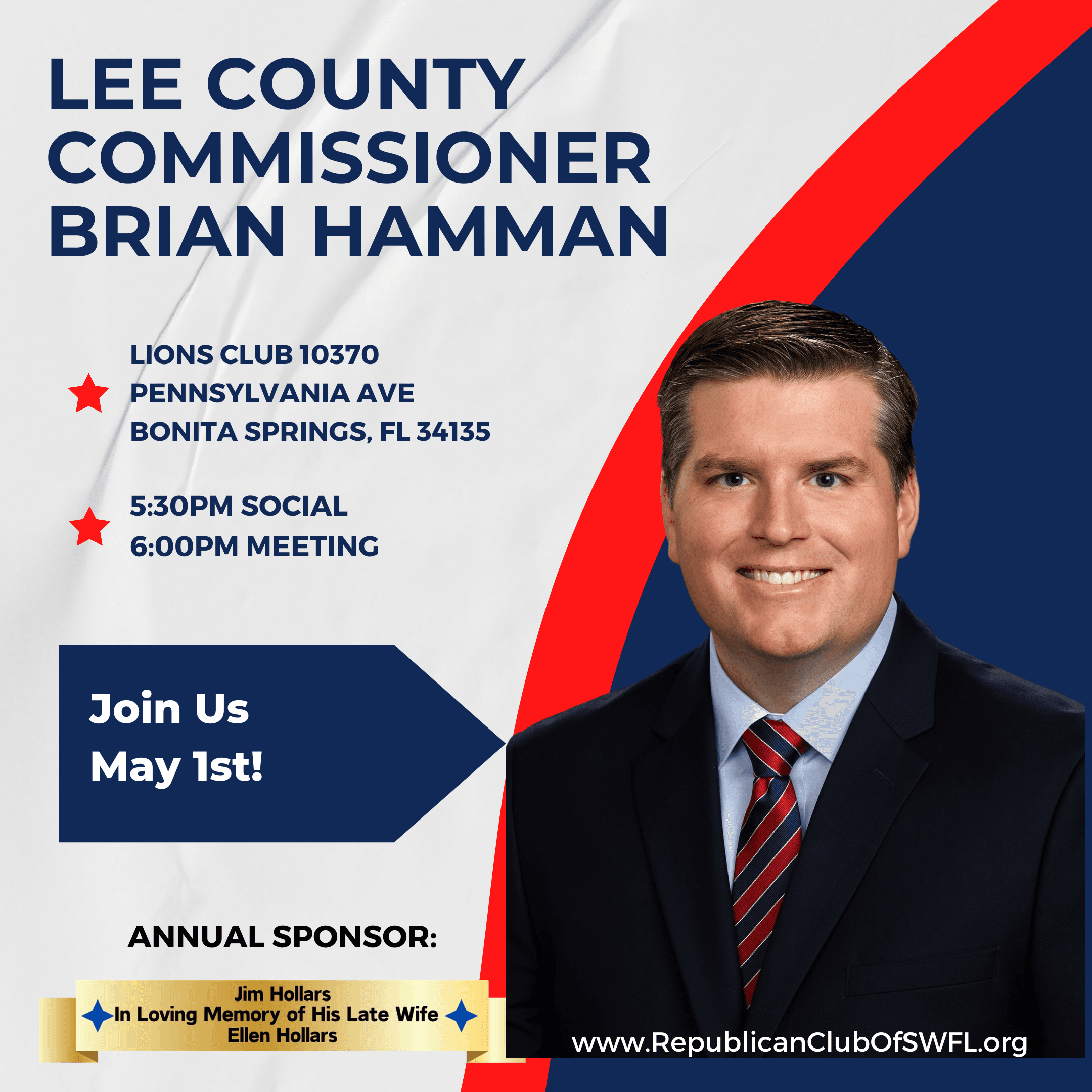Join the Republican Club of SWFL at our May Monthly Meeting hearing from our friend County Commissioner Brian Hamman